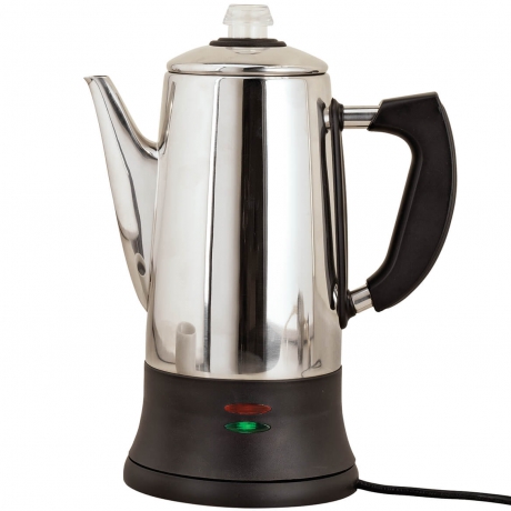 Convenient features include concealed heating element, wrap-around cord storage, cool-touch handle, Keep Warm function and indicator light.The durable stainless steel coffee percolator construction provides lasting beauty, complete with removable stainless steel filter bask.