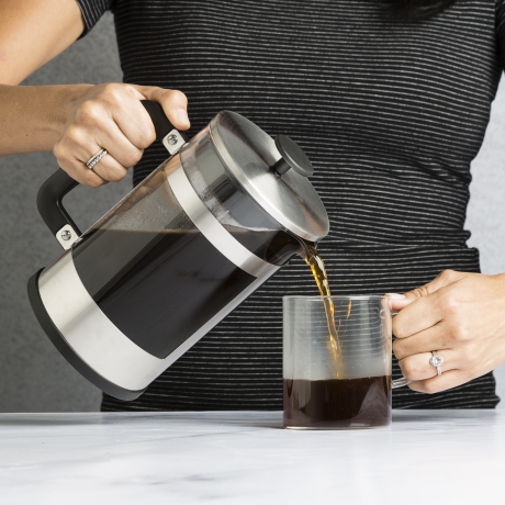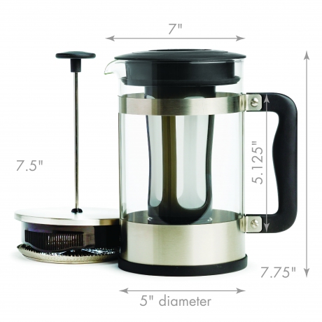 2 WAYS TO BREW – This set includes one borosilicate glass pitcher, a cold brew filter with lid and a French press plunger. You can enjoy smooth, delicious cold brew coffee at home by using the fine mesh cold brew filter, and use the included stainless steel French press plunger to make 6 cups of flavorful, bold French press coffee .EASY-TO-USE - Brew, store and serve all in one. A simple four step process for cold brew coffee: 1) Add coffee grounds to brew filter. 2) Pour cold water over coffee. 3) Brew in the refrigerator overnight (or longer if you prefer stronger coffee. 4) Serve and enjoy. For French press coffee, it’s easy to make in just 3 simple steps: 1) Remove the French press plunger and add desired amount of coffee grounds. 2) Pour hot water and allow coffee to brew to desired strength. 3) Serve and enjoy. .INNOVATIVE, ONE-OF-A-KIND DESIGN - Made of extra-tough borosilicate glass with a durable protective holder and comfortable grip handle. Non-slip silicone base protects the glass from accidental slips. For cold brew filter and lid: specially designed lid for seals in freshness for up to two weeks and provides a smooth, drip-free pour and the fine mesh cold filter keeps grounds out of your coffee. For French press plunger: The fine stainless steel filter keeps sediment out of your coffee so you can enjoy bold and flavorful French press coffee. .PERFECT COMPACT SIZE - Large enough for multiple servings. The 2-in-1 Coffee Maker makes up to five servings of delicious, smooth cold brew coffee or flavorful French press coffee. .ENDLESS POSSIBILITIES - Use your favorite coffee grounds or tea and base your brew time on desired strength. Coffee lovers can add favorite flavors such as vanilla, cinnamon or coconut before cold brewing or hot brewing. .EFFORTLESS CLEAN UP - The 2-in-1 Craft Coffee Maker is very easy to clean- the cold brew lid and filter are top rack dishwasher safe and cold brew filter has a removable bottom to easily empty used grounds..SAVES YOU MONEY - Enjoy the craft coffee experience from the convenience of your home at a fraction of the price! No more trips to your local coffee shop- get 2 types of craft coffee from one easy to use and easy to clean coffee maker!.
