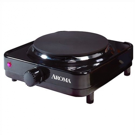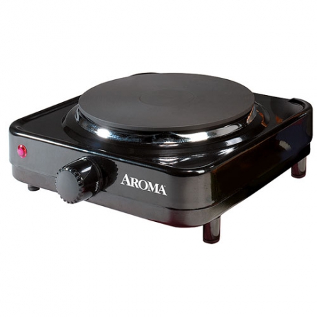 Give your kitchen some cooking flexibility with the Aroma Single Burner Portable Electric Range. This handy hot plate appliance is perfect for those moments when you need an extra burner or microwave — or don't have a kitchen to work with. It's ideal for keeping meals warm at pot lucks, making lunch in your dorm room or heating up a meal when you're sitting outside on your patio. With four different temperature settings, a sturdy die-cast burner and a stylish black finish, this terrific electric hot place will become a staple in your cooking repertoire. The Aroma Single-Burner Portable Electric Range is extremely easy to clean and works well in your home, office, camper and more.
