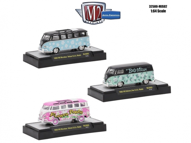 Brand new 1:64 scale diecast models of Auto Thentics 3 Cars Set Volkswagen USA Models WITH CASES by M2 Machines..Limited Edition..Brand New Box..Has Rubber Tires..Metal Body and Chassis..Detailed Interior, Exterior..Officially License.