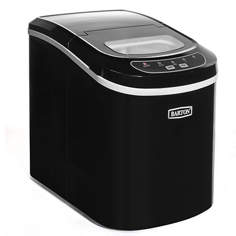 You can make ice cubes for parties or hot summer days within a few minutes with Barton portable Ice Maker Machine. Its compact and contemporary design makes it easy to transport and stylish to display. With 1.5 lbs capacity of ice cube basket, this ice maker saves space in your freezer for other food. The modern design and adjustable cube size add to the unique functionality of this Countertop Ice.Features:Compact & Portable - Perfect for your RV, boat, or small kitchen, this ice maker is compact, bars, restaurants, portable and works anywhere there is an outlet availableNo installation Required - just plug in unit, add water and enjoy a batch of ice in as little as 6 minutesIce Production - Able to make up to 26 lbs. in 24 hours of bullet ice cubes per day, you'll never have to deal with pesky ice trays ever againHave Ice Fast - You can create ready-to-serve ice in an average of 6 minutesEasy-to-Use Controls - Turn this ice maker on/off and choose your ice sizeEasy Monitoring - Able to see through window allow for process monitoring & ice level checkingLight Indicator - When the water level in the reservoir runs low, you'll be alerted to add more waterSpecifications:Ice Shape: BulletVoltage: 115V/60hzIce Cube Size: Small and LargeFull Ice Basket Indicator: YesAdd Water Indicator: YesAutomatic Overflow Protection: YesOperating Cycle: 6 minutesIce Making Capacity Per Cycle: 9 piecesDaily Ice Making Capacity: 26 poundsCertifications: ETL, CSA, UL ListedOverall Dimension: 13-1/2"(L) x 9-1/2"(W) x 12-3/4"(H)Package Content:Countertop Ice MakerIce ScoopUser Manual.
