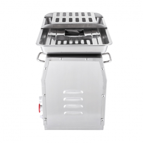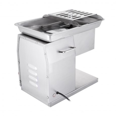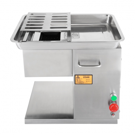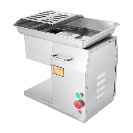 Stainless steel meat slicer power: 500W,rated motor frequency: 50HZ working capacity 660 lb/hour ,cut thickness:3mm.The blade is designed by external hanging style which is convenient for washing and can guarantee your sanitation.The machine has safe protection butt.