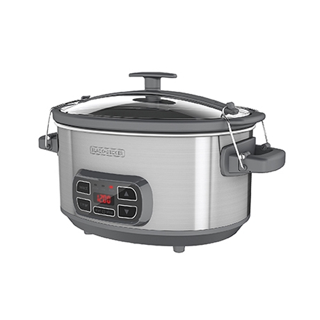 Create delicious meals that fit your schedule with the BLACK+DECKER Portable Digital Slow Cooker. Just gather ingredients in the 7-quart stoneware pot, then use the digital controls to set the perfect time and heat (low, high, warm). The unit automatically switches to 'Warm' mode when cooking is complete, so you’ll have a delicious meal right when you need it. And you can take it anywhere! The locking lid and large handles ensure mess-free transport from the home to the office, the tailgate, or the family get-together. Plus, cleanup is easy with the dishwasher-safe stoneware pot and tempered glass lid. Choose the time and heat, and the slow cooker does the rest, switching into 'Warm' mode when cooking is complete. Use the 'Stay-On' option for extended cooking. Make a hot meal for the whole family and have plenty of delicious leftovers with room for over eight servings in the 7-quart pot. Low, high, and warm settings for all your slow-cooking needs. The unit automatically switches to warm for up to four hours after cooking is complete. The durable 7-quart pot is removable for easy cleaning in the sink or dishwasher.