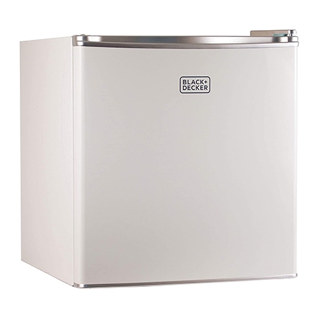 The BLACK+DECKER BCRK17 1.7 cubic Feet energy star fridge is one of the must haves for everyone going off to live at college. It’s small footprint makes it suitable for either placing on the floor, counter, desk or just about anywhere in a place where space is usually always at a premium. Perfect for keeping your favorite beverages, care package meals from home or leftovers after that late night food run. Organize it as you see fit and you’ll be amazed at how much it fits. There’s a dedicated freezer section for that ready-to-eat frozen meal and pint of your favorite ice cream. This space saving small refrigerator (17.5" x 18.5" x 19.7") stores food, soda, beer, and other beverages with minimal energy (70 watts) and without taking up too much space. The sleek, modern design - available in black, stainless steel, and white - is perfect for college dorm rooms, offices, garages, home bars, small apartments, and RV campers. The removable glass shelf expands the storage space and makes the fridge easy to clean. Additional door storage fits two cans (like soda and beer) or small containers on the top shelf, and liter or taller bottles and containers (like water, wine and milk) on the bottom shelf. A reversible door, leveling legs, and adjustable temperature control (33.8 degrees Fahrenheit at the lowest setting) make this mini fridge even more practical. The small freezer (8 inches wide x 2 inches tall) fits ice packs, most frozen dinners, and the included ice tray. Low sound operation is perfect for places where you don’t want a noisy appliance – waiting rooms, TV and game rooms, and even baby rooms where you can store milk for easy feeding.
