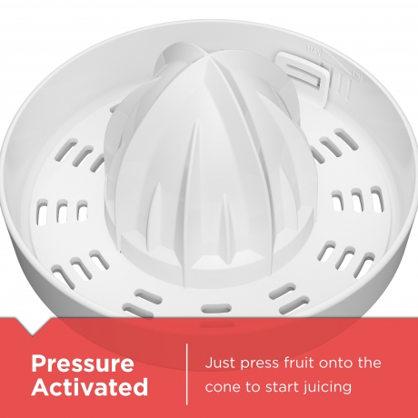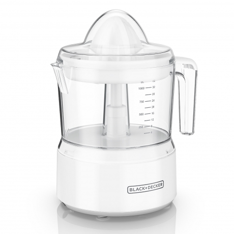 Freshly squeezed juice is just a spin away! The BLACK+DECKER 32-oz. Citrus Juicer features a dual-purpose, self-reversing cone that ensures maximum juice extraction from large and small citrus! Juice flows into the easy-pour pitcher, which includes measurement markings for accurate use in recipes and mixed drinks. Plus, all removable parts are dishwasher-safe for easy cleanup.
