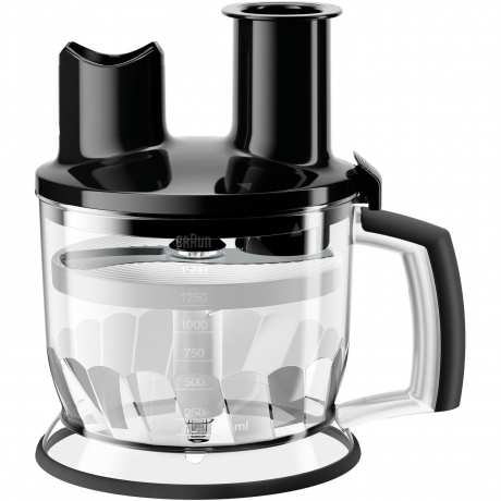 - 6-cup food processor attachment compatible with Braun MultiQuick Hand Blenders