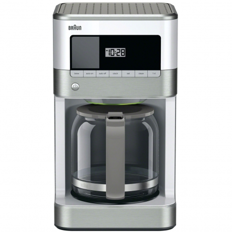 Braun’s Brew Sense 12-Cup Drip Coffee Maker features a glass Flavor Carafe that seals in the fresh flavor by minimizing air exposure. Each satisfying cup begins with Braun’s unique pure flavor system to ensure your coffee is made at the right temperature and brewing time to extract the best flavor and aroma. An automatic, programmable 24-hour timer means you won’t have to wait to enjoy that first sip the moment you want it. And the anti-drip system allows you to pour anytime during the brewing cycle. Plus, the Braun gold-tone filter, unlike paper, enhances the flavor of your coffee by allowing essential oils to reach your cup. In addition, a “Clean” warning will illuminate when it’s time to descale, so the best coffee flavor can be maintained. The Brew Sense's elegant design features a premium display with LED indicators and easy-to-read buttons, convenient cord storage, smaller footprint and lower profile. And the sleek stainless steel and white finish will look stunning in any kitchen. With the Brew Sense, you know you’re going to have a satisfying cup of goodness to savor time after time.