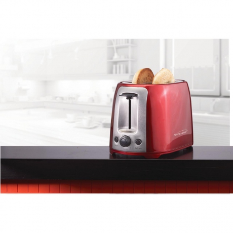 A model way to start your morning, the Brentwood 2-Slice Cool Touch Toaster features extra-wide slots to accommodate gourmet breads and a cool-touch body that allows for quick and easy cleanup. With an elegant combination of red and stainless steel design, this toaster will complement any home decor and fit on any countertop. This versatile toaster will be the perfect addition to any kitchen!