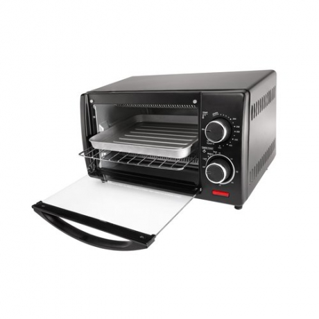 This Chefman 4-Slice Toaster Oven addresses most of your basic kitchen needs with simplicity. Convenience and speed come together to suit today's lifestyle. The space-saving design gives you many of the features of a traditional oven in a powerful, compact package with sleek, stainless steel accents. This versatile appliance adapts easily to small spaces such as dorms and apartments. The Chefman toaster oven has a large glass door and spacious interior width to accommodate foods such as an 8" pizza. It packs a potent 1000 watts to deliver quick and effective results. You can adjust the temperature with the easy-to-use controls, which will help you achieve the desired level of doneness. When it's time to clean the nonstick toaster oven, just remove the detachable interior components and give them a rinse. This appliance combines traditional technology with modern simplicity in one handy kitchen gadget.