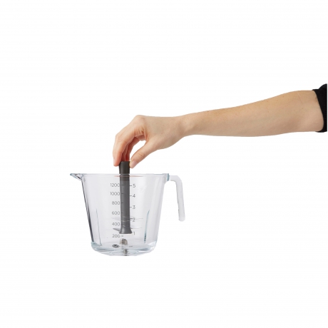 New larger capacity glass bowl.No electricity required.5 cup (1182 ml) glass measuring cup with stainless steel accents.Bowl and blade are top-rack dishwasher safe.Hand-wash recommended for lid.