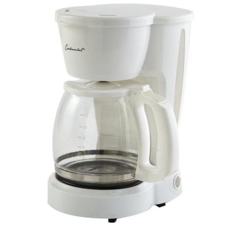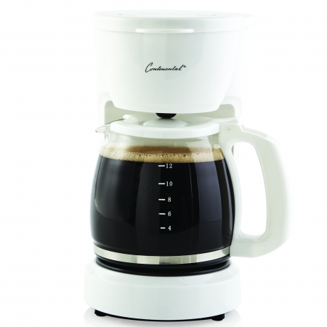 Features: -12-Cup capacity with pause and serve a function, the permanent filter allows for perfect brewing every time. -Non-drip glass carafe and non-stick keep warm plate will keep your coffee warm and delicious. -Permanent filter included. Keep warm hot plate for that second cup or refill.. -Durable white plastic body and glass carafe will fit on a countertop in any kitchen, office, or college dorm room. -Measures: 9.7 x 7.7 x 11.95", with 900W power. -ETL Listed, and 1 Year Limited Warranty. Product Type: -Automatic Machine. Color: -White. Material: -Plastic. Dimensions: Overall Height - Top to Bottom: -11.95". Overall Width - Side to Side: -9.7". Overall Depth - Front to Back: -7.7". Overall Product Weight: -2.95 lbs.