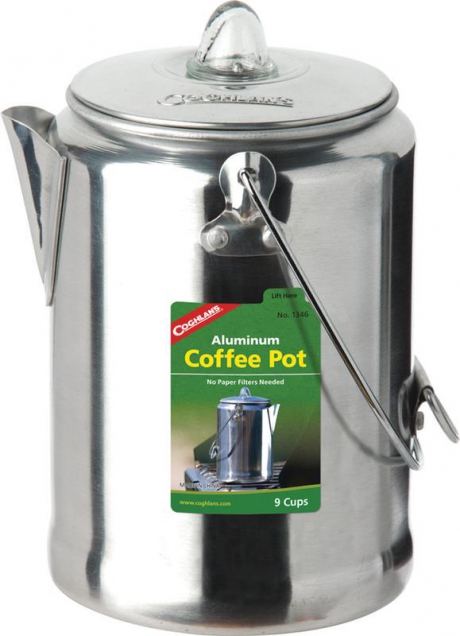 - Coghlan's aluminum coffee percolator is made of durable, rustproof polished aluminum