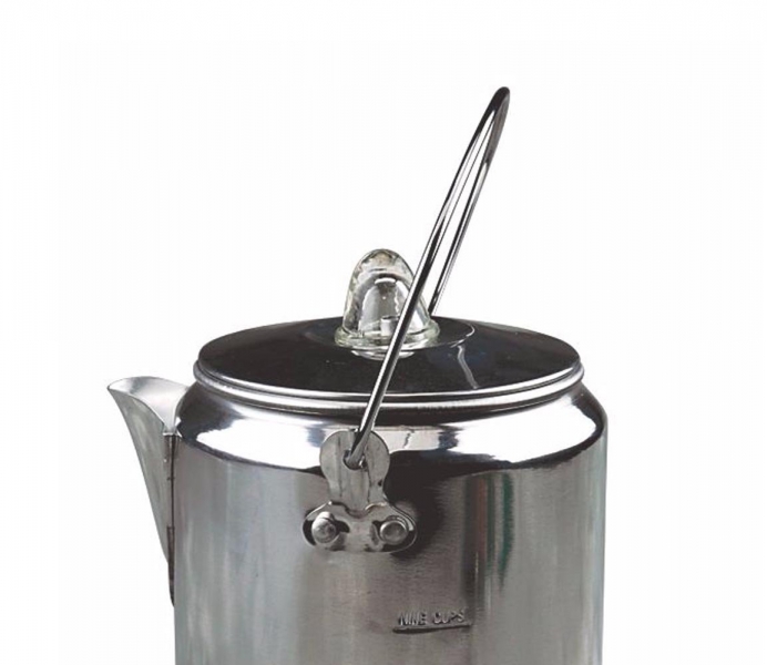 Brew up coffee for the whole crew with the Coleman 9-Cup Camping Percolator Coffee Pot. This lightweight, durable pot includes a base, a tube, a basket and a basket lid for a fresh cup of joe nearly anywhere there is a heat source. With two handles, one on the top and another on the side, this 9-cup coffee percolator is designed to make pouring safe and easy. The surface is smooth and can be wiped down quickly to make ready for the next tasty pot. The aluminum coffee percolator is designed for both indoor and outdoor brewing, making this item a superb appliance for unexpected power outages and other emergencies. This handy appliance is one of many outdoor cooking essentials offered by Coleman. Collect them all and be prepared for a fun and comfortable camping adventure.