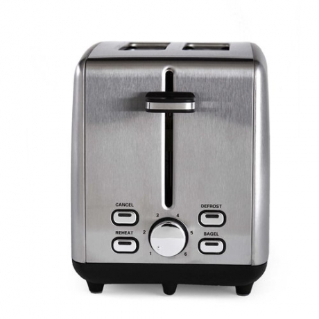 Sleek and stylish 2-slice extra wide capacity toaster in stainless steel for the professional kitchen. Wide slots, self-centering, and safety toast lift will handle the fluffiest bagel or thickest piece of bread. Adjustable browning dial will let you control the right amount for everyone's taste. Cancel, reheat, and defrost settings. Durable quality for apartments, college dorm rooms, office kitchens, or any home. ETL Listed, and 3 Year Limited Warranty.