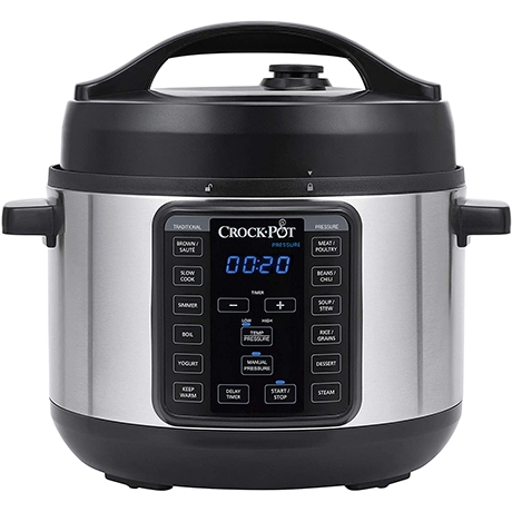 The Crock-Pot 4-Quart Express Crock MINI Pressure Cooker can cook meals up to 70% faster than traditional cooking using one compact versatile appliance to serve nutritious, home-cooked meals for families or parties of four people or more. Thanks to convenient one-touch settings for various pressure-cooked meals, you can choose to eat sooner, or you can use the slow cook setting to come back later to a delicious, hot meal. You can also steam, brown, sauté, simmer, boil, or use the Manual Pressure setting, making one-pot meals easier than ever.
