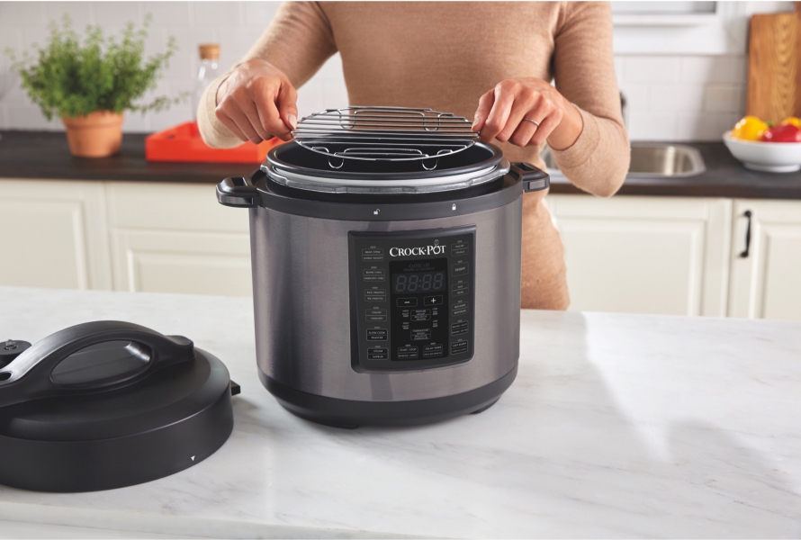 The Crock Pot brand, the leader in 1 pot cooking, introduces the Express Crock Programmable Multi Cooker, an all in 1 appliance that lets you Slow Cook, Pressure Cook, Brown and Sauté, or Steam