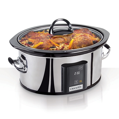 Gather the family around the dinner table with help from this programmable 6-1/2-quart Crock-Pot slow cooker. An ideal size when cooking for up to eight or nine people, the unit's roomy interior offers enough space to accommodate a 7-pound roast or a large batch of butternut squash soup, vegetable curry, or other favorite recipe. With slow cooking, food has the time it needs to reach robust levels of flavorful perfection. Offering a wonderful alternative to eating out, grabbing fast food, or heating up frozen dinners, the Crock-Pot slow cooker creates mouth-watering home-cooked creations that are healthier, lower in cost, and that produce delicious aromas that are sure to lure loved ones back to the table.