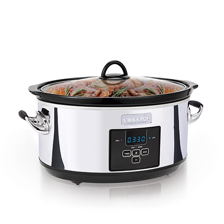 Slow cooking in your Crock-Pot® 7-Quart Programmable Slow Cooker provides you with the flexibility to prepare a meal early, and then have it slow-cook all day. You can carry out your full day's activities and still enjoy a nutritious, home-cooked meal in the evening. It's a healthy, cost-efficient, and convenient way to serve tasty, satisfying meals. This stylish 7-quart slow cooker has a digital countdown control that lets you program cook times anywhere from 30 minutes up to 20 hours. After cooking time is complete, the slow cooker will automatically shift to the Warm setting to keep your dish at an ideal serving temperature.