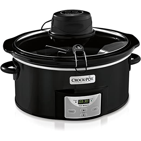 The Crock-Pot Digital Slow Cooker with iStir does the stirring for you so you don't have to. With the slow cooker's countdown digital timer and automatic stirring, you are provided the convenience of preparing food with perfect results, even if you aren't in the kitchen. Simply prepare ingredients, set cook time, and attach the motor housing with the proper paddle in place. Choose the general purpose paddle for soup and chili or the stew paddle for thick stew and more dense dishes. After an initial 2-hour delay, the stirring self-activates every 30 minutes to ensure thorough mixing and even heating until turned off. Stirs your food for you, so you can step out of the kitchen and enjoy your day. Plus, consistent stirring distributes heat for more even cooking. The general purpose paddle can be used for most soups, dips, and thinner recipes. The stew paddle can be used for thicker, denser recipes such as stews.The classic lid handle is included for the times when your recipe doesn't need any stirring. Features digital pre-set controls for high and low settings: choose from 4 or 6 hours on high heat or 8 or 10 hours on low heat. iStir works with any of the time settings, and it will continue stirring, even while in 'warm' mode. Improve the taste and texture of your food. Automatically stirs for five minutes every half hour. Select the Pulse option for a one-minute stir at any time. Since the food is being stirred, there's less build-up and burnt edges on the stoneware wall to worry about, so less need for scrubbing. The removable stoneware, glass lid, and stirring paddles can be washed by hand or placed in the dishwasher.