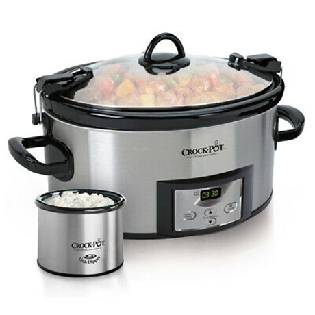 An easy way to take your slow-cooked meal on the road. The Crock-Pot Programmable Cook & Carry 6-Quart Oval Slow Cooker has an easy locking gasket lid that will help you get to your final destination without making a mess. Ideal for all your favorite slow cooker recipes, with 6-quart capacity and programmable time settings to accommodate varied cooking needs and time constraints. This slow cooker will keep food safe on-the-go with hinged locking lids and carrying handles. With these features, there’s no need to repack food in other containers - making travel a breeze. This slow cooker also has removable oval stoneware that can double as a serving dish.