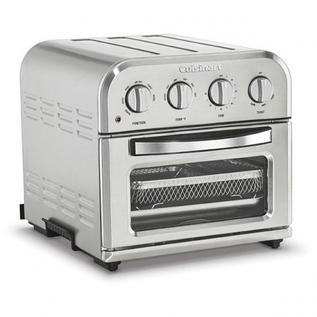 This unique kitchen workhorse is actually a premium compact toaster oven with a built-in air fryer. That means it not only bakes, broils, and toasts, it also lets you air fry right inside the oven. Air frying, which uses powerful ultra-hot air, is a healthier way to prepare delicious fried favorites, from wings to fritters to fries to shrimp. And since toaster ovens stay on the countertop, this fryer doesn?ÇÖt have to move back and forth, from cupboard to counter. Enjoy the crunch without the calories and messy cleanup, with the Cuisnart TOA28 Compact Air Fryer Toaster Oven!