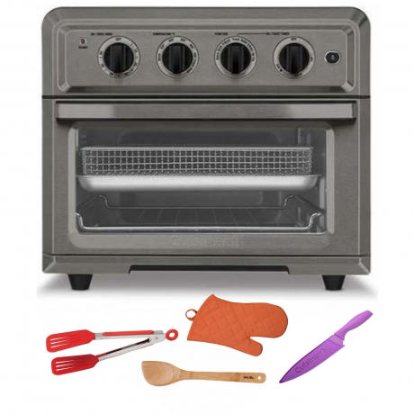 - BUNDLE INCLUDES: Cuisinart TOA-60 Air Fryer Toaster Oven (Black / Stainless), 8-inch Nylon Flipper Tongs, Harold Import Helen's Asian Kitchen 15" Bamboo Stir Fry Spatula, Cuisinart Chef Knife (8"/ Purple), HIC Gourmet Classics Oven Mitt (Color May Vary)