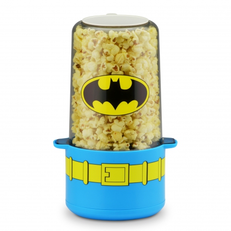 Kick back with a classic DC comic and a popcorn snack for a super time-out from the action. This easy-to-use Batman stir popper takes the fight out of making popcorn! With a simple push of the button, the heat and stainless stir rod are activated. Makes 6 cups of fresh, delicious popcorn in minutes. Kernel and oil scoops are included for the ideal popcorn to oil ratio. The BPA-free Tritan top doubles as a serving bowl when finished popping.