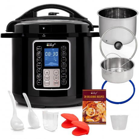 Deco Chef 8 QT 10-in-1 Pressure Cooker – Instant Rice, Sauté, Slow Cook, Yogurt, Meats, Deserts, Soups, Stews – Includes Recipe Book, Tempered Glass Lid, Mitts, Grill Rack, and Steaming Basket Reviews