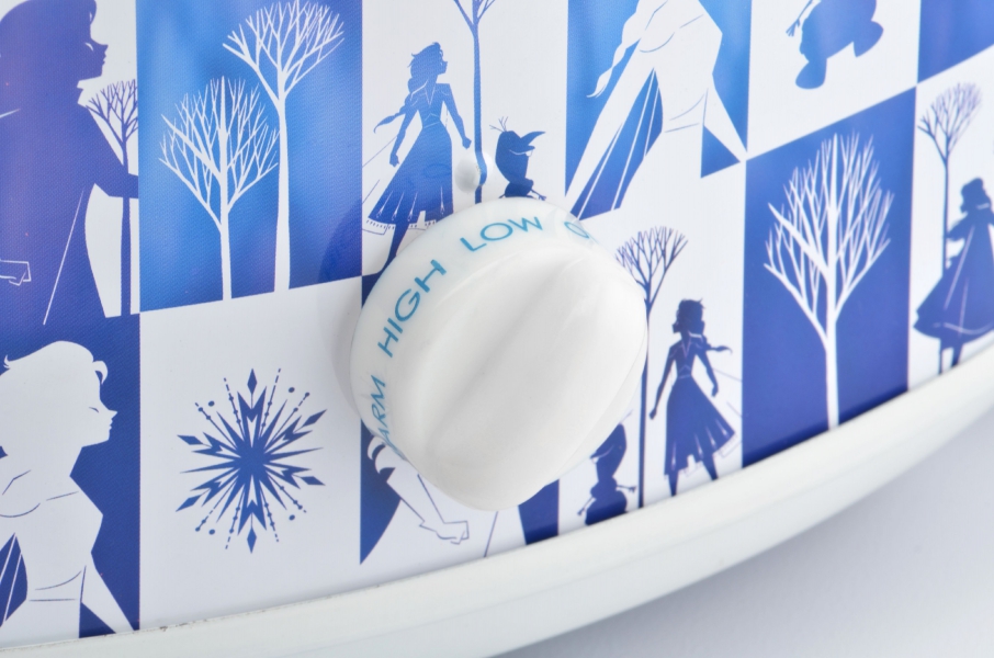 The large 5 quart capacity of this Disney Frozen themed slow cooker is versatile enough to prepare everything from soups and stews to roasts and more! The dishwasher safe insert lifts out for easy transitioning from cooking to serving. And the adjustable temperature controls allow you to cook a wide range of dishes.