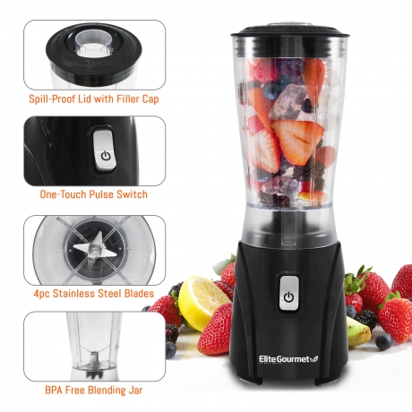 Prepare healthy and refreshing drinks with the Elite Gourmet Personal Drink Blender. Easily prepare delicious fruit smoothies or a nutritious protein shake for a post-workout boost.