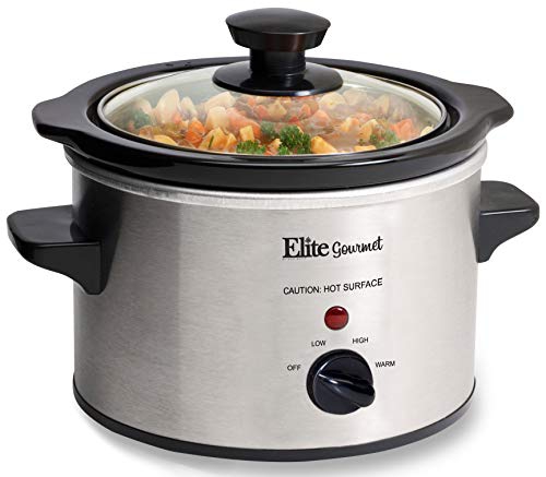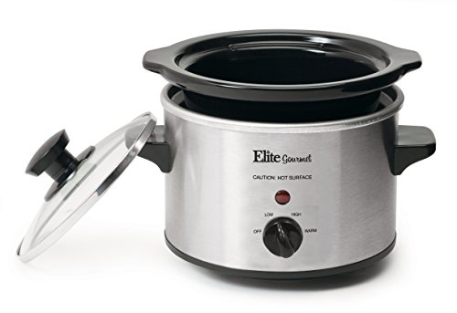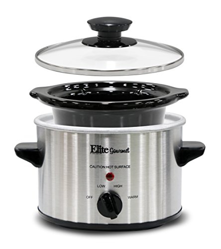 The Elite Gourmet 1.5 Qt. Mini Slow Cooker is perfect for cooking and serving small one-pot meals and appetizers such as soups, stews, meatballs, dips, and sauces. It's a great kickoff for a fondue party or where everyone prepares their favorite dip in their 1.5 Qt. Mini Slow Cooker. This versatile small appliance can be a single person's best companion as well as the all-star at your next Super Bowl party. It features low and high temperature settings, a keep-warm setting allowing you to keep your meal hot and fresh before it?s served, and an attractive stainless steel finish. It includes a removable inner stoneware pot that?s easy to clean, with a tempered glass lid with metal rim for easy viewing of cooking cycle and cool-touch handles and knob for safe handling.
