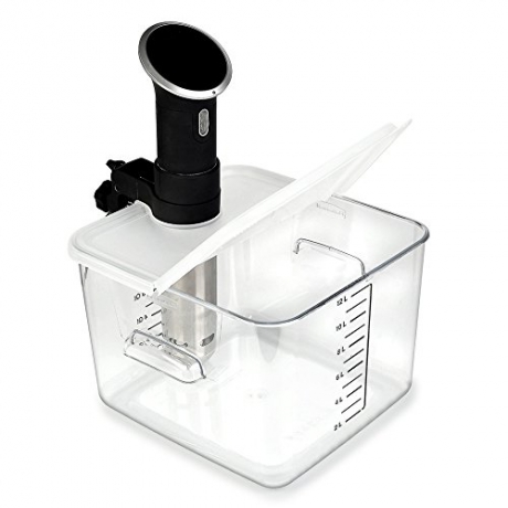 A better solution for sous vide cooking chefs with ANOVA cookers where water bath evaporation is annoying. You don't have to worry about the water evaporation as the lid miniminzes the heat loss and steam loss by firmly covering the container. Cook long and you don't have to refill water, particula