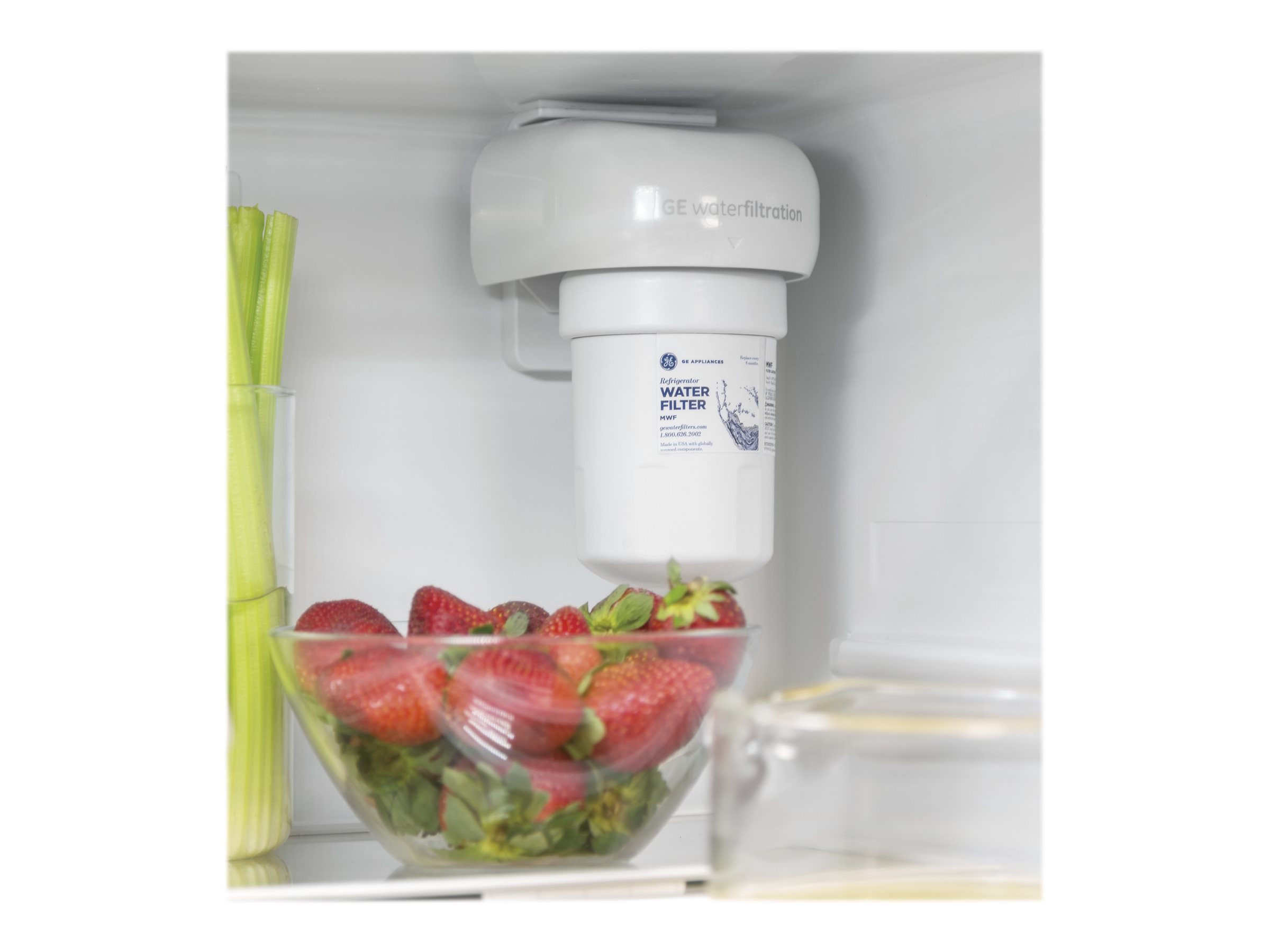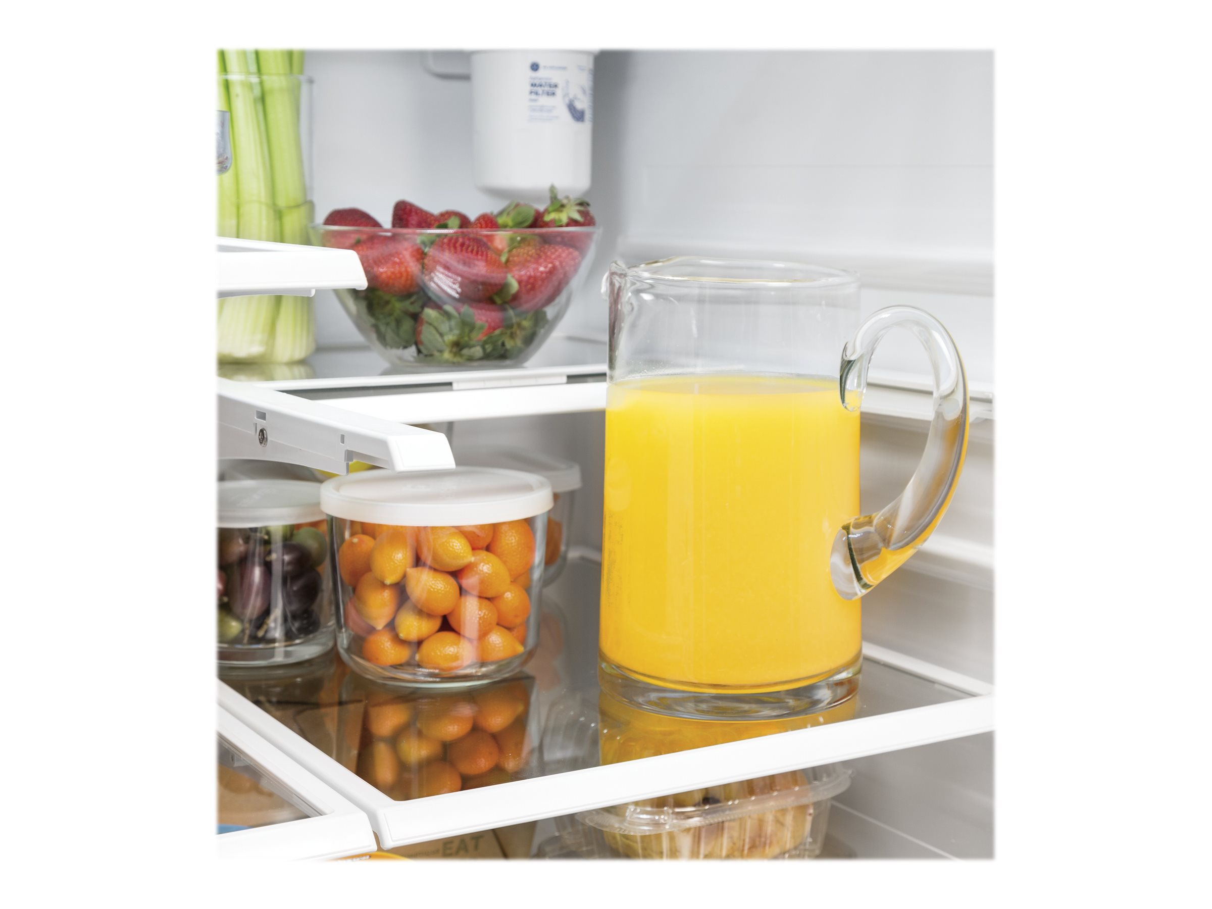 E GFE24J 33 Inch Wide 23.8 Cu. Ft. Energy Star Rated French Door Refrigerator w Features:With a total capacity of 23.8 cu. ft., this refrigerator has plenty of room for all your refrigerated and frozen goodsIncludes LED lighting to illuminate your refrigerator interiorFeatures ice and water dispensers for easy access to refreshment5 tempered glass shelves offer elegant, dependable storageIncludes a 1-year manufacturer warranty on parts and laborProduct Technologies:Quick Space Shelf: Need a little extra room for taller items, like wine bottles or towering desserts? The Quick Space shelf has you covered, effortlessly sliding down and out of the way to make room for whatever you've got coming in.Specifications:Refrigerator Capacity: 16.5 cu. ft.Freezer Capacity: 7.3 cu. ft.Total Capacity: 23.8 cu. ft.Bulb Type: LEDShelf Material: Tempered GlassCounter Depth: NoCrisper Bins: YesGallon Door Storage: YesDepth: 37-1/2"Height: 69-7/8"Width: 32-3/4"Amperage: 15Voltage: 120 Black Stainless.