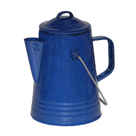 Use for preparing coffee while camping over the fire. heavy glazed enamel steel is rustproof and durable. top and side handles with easy pour spot. capacity: 8 cups.