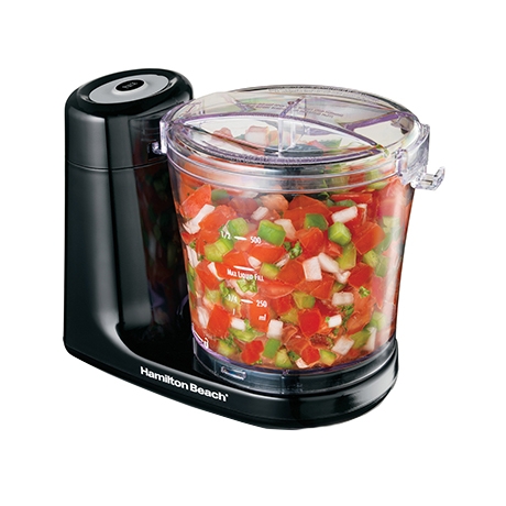 Hamilton Beach 3 Cup Food Chopper - 72900 Hamilton Beach Food Choppers speed food prep by handling the chopping, mincing and mixing for you. Don't let the compact lightweight design fool you. This popular food chopper is powerful enough to take on onions, herbs, nuts, garlic and more. You can even use the food chopper to puree sauces and baby food. Hamilton Beach Food Choppers' stainless steel chopping blades provide powerful reliable results. Plus they're easy to use and clean the bowl lid and chopping blade are dishwasher safe and the hideaway cord cuts countertop clutter. Touchpad control Onetouch pulse with easy-to-clean touchpad. Removable parts are dishwasher safe. Has built in oil dispenser.