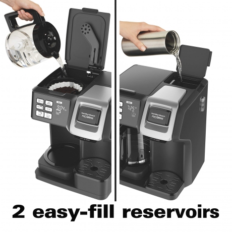 No two coffee drinkers are the same so when you make coffee at home, the flexibility to customize how and what you brew is key. From fresh grounds to K-Cup pods, the Hamilton Beach FlexBrew 2-Way Coffee Maker gives you the options to please fans of all types of coffees and quantities. This combo coffee maker lets you brew a full pot using your favorite grounds on the carafe side, or make a cup for yourself using a single-serve pod or grounds on the single-serve side.