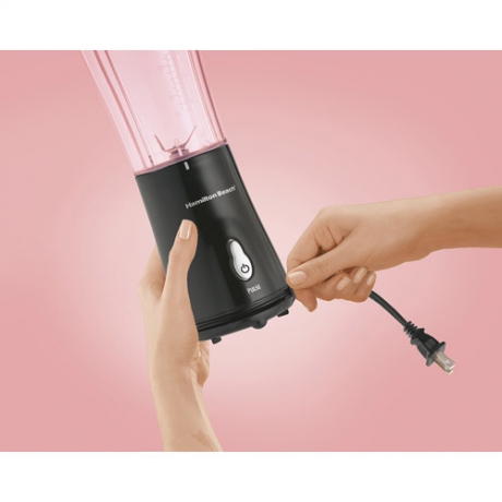 - That's right, the Hamilton Beach Single-Serve Blender delivers all the delicious-tasting flavours of restaurant smoothies and frozen drinks at a fraction of the price. What?s more, this little blender lets you personalize your recipes, perfect your mixology skills and control your portions, all in one. With its durable stainless-steel blades and pulse blending action, it?s fully equipped to prepare a variety of great-tasting smoothies, shakes and more. Don't let its space-saving design fool you. The versatile blending container functions as a mixing jar one minute and doubles as a portable travel mug with attachable drinking lid the next. For a lightweight, easy-to-use, inexpensive personal blender, the Hamilton Beach Single-Serve Blender is well worth the investment. Just imagine all the recipe possibilities, extra storage room and money you're saving. PRODUCT FEATURES.1) Compact design ideal for small living spaces and on-the-go portability2) Great for making smoothies, shakes, baby formula, marinades and salad dressings3) Efficient 175-watt motor provides all the power you need for fast, reliable performance4) 14-oz. blending jar also functions as portable travel cup that fits most car drink holders5) BPA free in food zones: blender jar contains no BPA (bisphenol A)6) Drinking lid with spout allows for easy sipping7) Durable, stainless steel cutting blades easily blend smoothies and shakes using either frozen or fresh fruit in the mixture8) Sturdy base rests on any surface9) Simple one-touch operation with ON/PULSE button10) Jar and lid are dishwasher safe11) Convenient wrap-around cord tucks away for easy storage PRODUCT BENEFITS & DETAILS Take It Wherever You Go Tired of lugging around extra cups while you're on the go