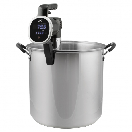 Create mouth wateringly tender and juicy meals with this Kalorik Black Sous Vide Immersion Cooker. It is simple to use and provides tasty results with minimal work. This sous vide cooker features a whisper-quiet motor operation that circulates water efficiently for precise and even cooking, so you are left with a uniformly heated water bath which you can set between 75-210 degrees Fahrenheit. You will appreciate the intuitive built-in control dial that allows for hassle-free setup that you can just set and go about your business. This sous vide immersion circulator cooker includes a bright, easy to read digital readout so you know exactly how hot the bath is any time.