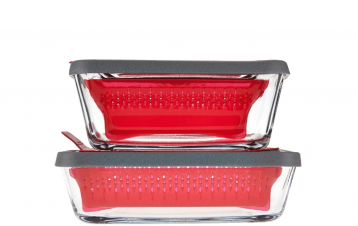 - Measurements: 6-cup with lid 8-3/4"W x 6-3/4"L x 2-1/2"H; 4-3/4-cup with lid 8-1/8"W x 4-3/4"L x 3-1/4"H