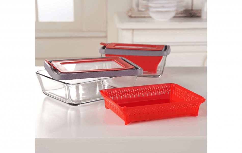 - Measurements: 6-cup with lid 8-3/4"W x 6-3/4"L x 2-1/2"H; 4-3/4-cup with lid 8-1/8"W x 4-3/4"L x 3-1/4"H