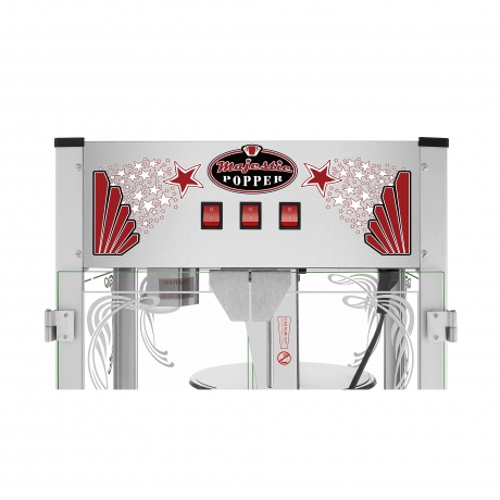 - EASY TO USE- Built with stainless steel and tempered glass food zones, this machine makes popping popcorn fast and simple. The 3-switch design allows you to use the kettle heater and stirrer, overhead light and warming deck independently of each other.