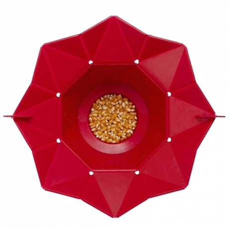 - Simply fill the recessed cup in the bottom of the popper with up to 5 tablespoons of kernels, fold in the top, and place in the microwave.
