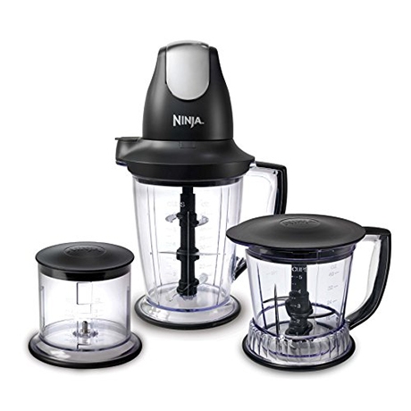 The Ninja Master Prep Professional handles all of your chopping, food processing, and blending needs in 3 conveniently sized jars great for personal servings or for entertaining! Put the power in the palm of your hand with the versatile Master Prep Professional which crushes ice into snow in seconds, blends frozen fruits into creamy smoothies, and chops fresh ingredients evenly! Mince, dice, chop, blend, and puree in the 16 oz (2 cup) chopper bowl or larger 40 oz (5 cup) processor bowl, and achieve perfect frozen blending in the 48 oz (6 cup) pitcher.