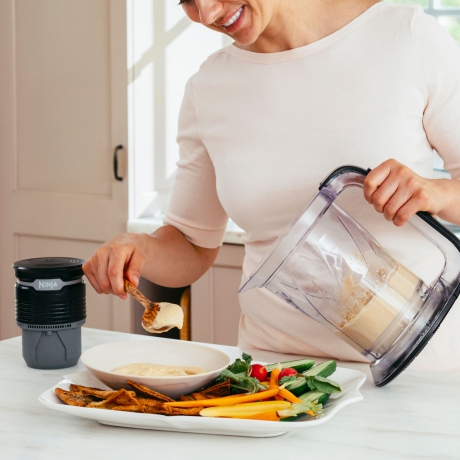 Crush ice into delicious margaritas or chop veggies into salsa with the Total Crushing® & Power Chopping Blade.Liquefy ingredients into your favorite smoothies, shakes, dips, and dressings with the High-Speed Blade.Mix doughs and batters for main dishes and desserts with the Dough Blade.700-watt power pod with an intuitive one-touch control button makes food and drink making simple. Push down on the power pod to pulse or hold down to continuously run.The Ninja Ultra Prep blender and food processor is lightweight and compact, taking up less space than traditional kitchen systems, and making it easy to store and use.This blender and food processor is easy to clean. All blades, splash guard lid, and jar are dishwasher safe. A cleaning brush is also included to help keep the power pod free of any debris.
