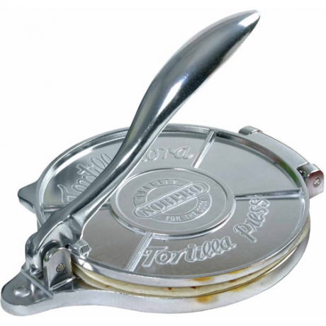 Take cooking to new levels and easily create authentic Mexican dishes with the Norpro Tortilla Press. It features a sturdy design and provides superior leverage for making large quantities. This tortilla maker press is easy to use, as you just insert the masa, and with one press you have a fresh tortilla. It also has a stylish design to bring a splash of personality to your kitchen. The Norpro press is made from aluminum for durability and includes a hinge on one side for easy opening and closing. This item also has a large handle with an ergonomic shape that fits comfortably in the hand. The metal finish is easy to clean and the compact size is easy to store away when not in use.
