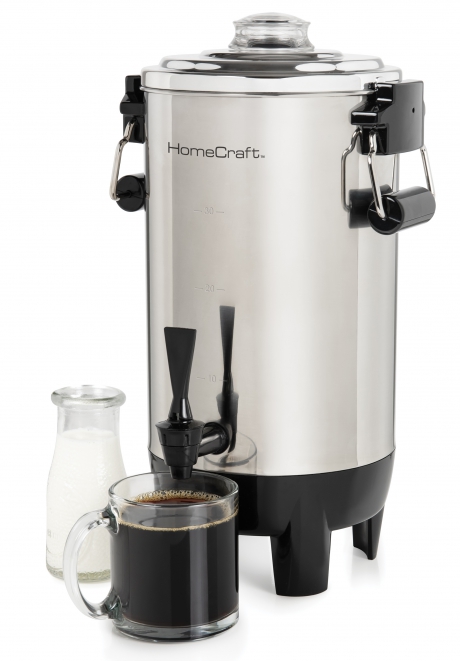 Large 30-cup capacity is fantastic for serving many people.Perfect for serving coffee, tea, hot chocolate, cider, & more.Quick-Brew urn efficiently brews 1 cup of coffee per minute.