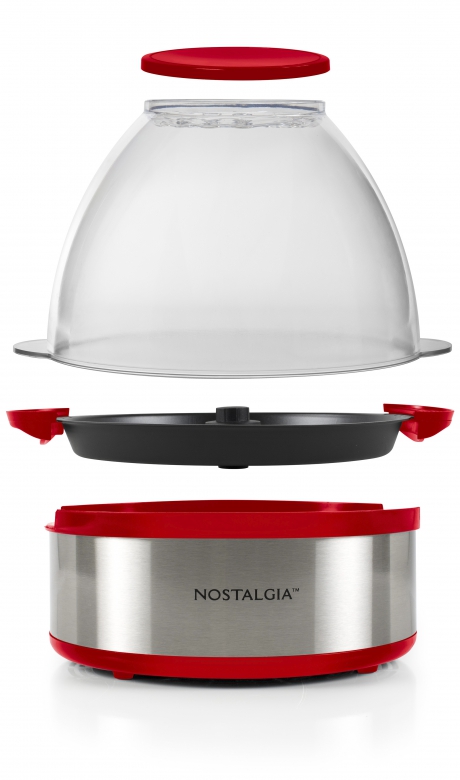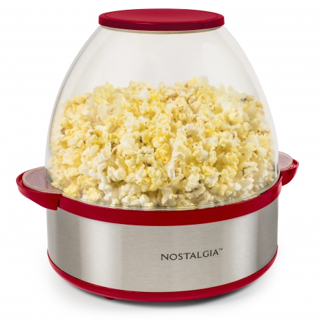 Owned StirCrazy in the past and thought I'd try this brand. Nostalgia speed-pop doesn't stir the kernels well, leading to burning. On/off switch is on the back of the machine...not convenient. Cannot remove 'stirrer' without using a screwdriver under the removable plate. Clear plastic bowl is a little flimsy, and I suspect won't last long. Returning it to store and will order StirCrazy online.