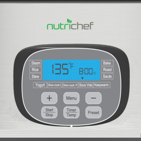 The NutriChef Multi-Cooker with LCD Display, (11) Preset Cooking Modes, Stainless Steel - Energy & Time Efficient Food Prep - Hassle-Free & Easy to Use: Cooking Made Easy - Ability to Slow Cook, Bake, Steam, Roast, Saute & Stew - Features the Unique ‘Sous Vide’ Cooking Mode - Enclosed Cooking Style Preserves & Enhances Natural Food Flavors - Healthy Food Benefits: Retains Original Vitamin & Mineral Nutritional Value - Removable Non-Stick Aluminum Inner Cooking Pot - (11) Built-in Preset Cooking Modes - Front Panel LCD Display Screen - Touch Button Controls - Adjustable Temperature Settings - Food Re-Heat / Keep Warm Function - Transparent Tempered Glass Lid - Integrated Pressure Steam Valve - Kitchen Timer Alarm Notification.