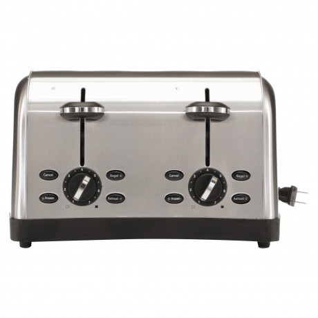 Because sometimes two slices of bread isn't enough, use this four-slice toaster with advanced toasting technology for consistent toasting every time. Seven toast settings for light to dark toasting means your breads, bagels and snacks will be toasted perfectly to accommodate any taste. Anti-jam feature automatically shuts the toaster off for safe use. Four operation modes include bagel, frozen, reheat and cancel. Extra-wide slots accommodate thick artisan bread slices, muffins and more. Dual, auto-adjusting bread guides ensure even toasting for a consistently even crunch. Removable, dishwasher-safe crumb tray makes cleanup fast and simple. 35" cord is retractable for quick, easy storage.