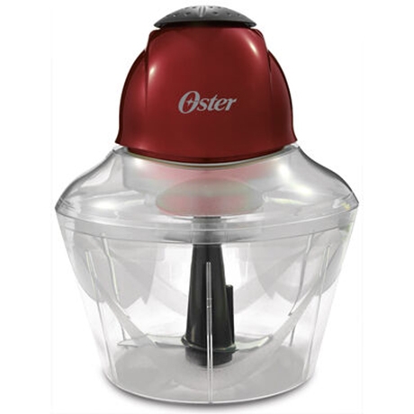 Make quick work of everyday food-prepping tasks in the kitchen with the help of the Oster® Top Chop ™Oster 4-Cup Chopper. Equipped with a powerful 250-watt motor, this surprisingly strong chopper offers a large 4-cup capacity work bowl with built-in measuring scale and razor sharp stainless steel chopping blades, allowing you to chop, shred and grind with ease. An easy press 'n pulse button provides ultimate control so you can achieve better and more precise chopping results. Chop vegetables & herbs neatly with no mess, shred soft cheese in seconds or grind hard nuts with no effort. The stylish metallic red finish will look great on your counter-top and dishwasher-safe parts make clean-up a snap.